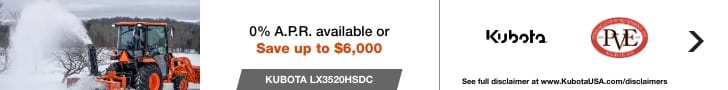 LX3520 Cab Tractor with a LA545 front loader and a LX2963 front mount snowblower
